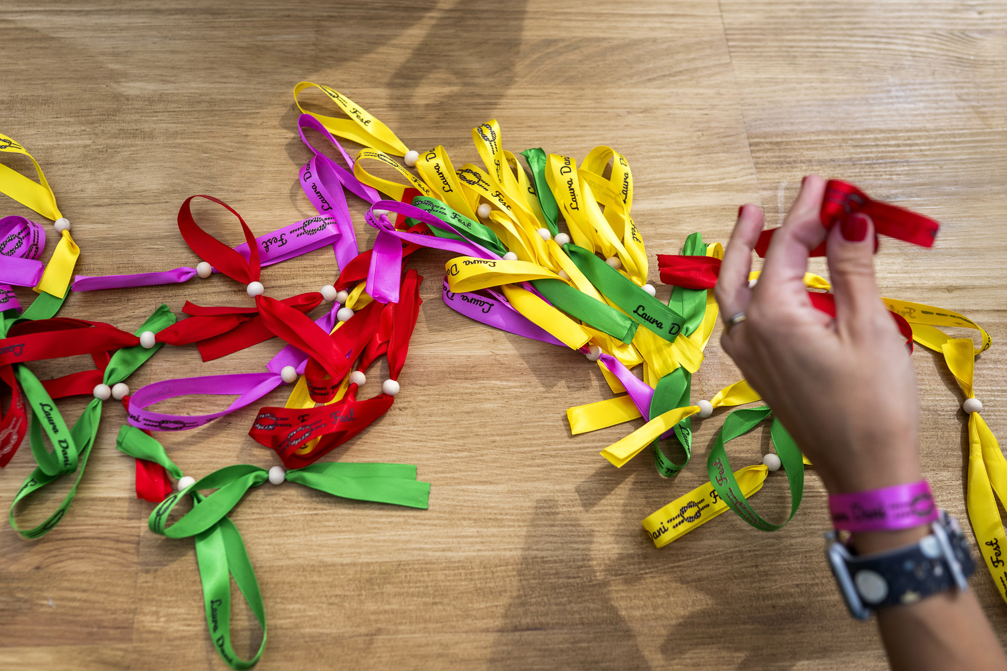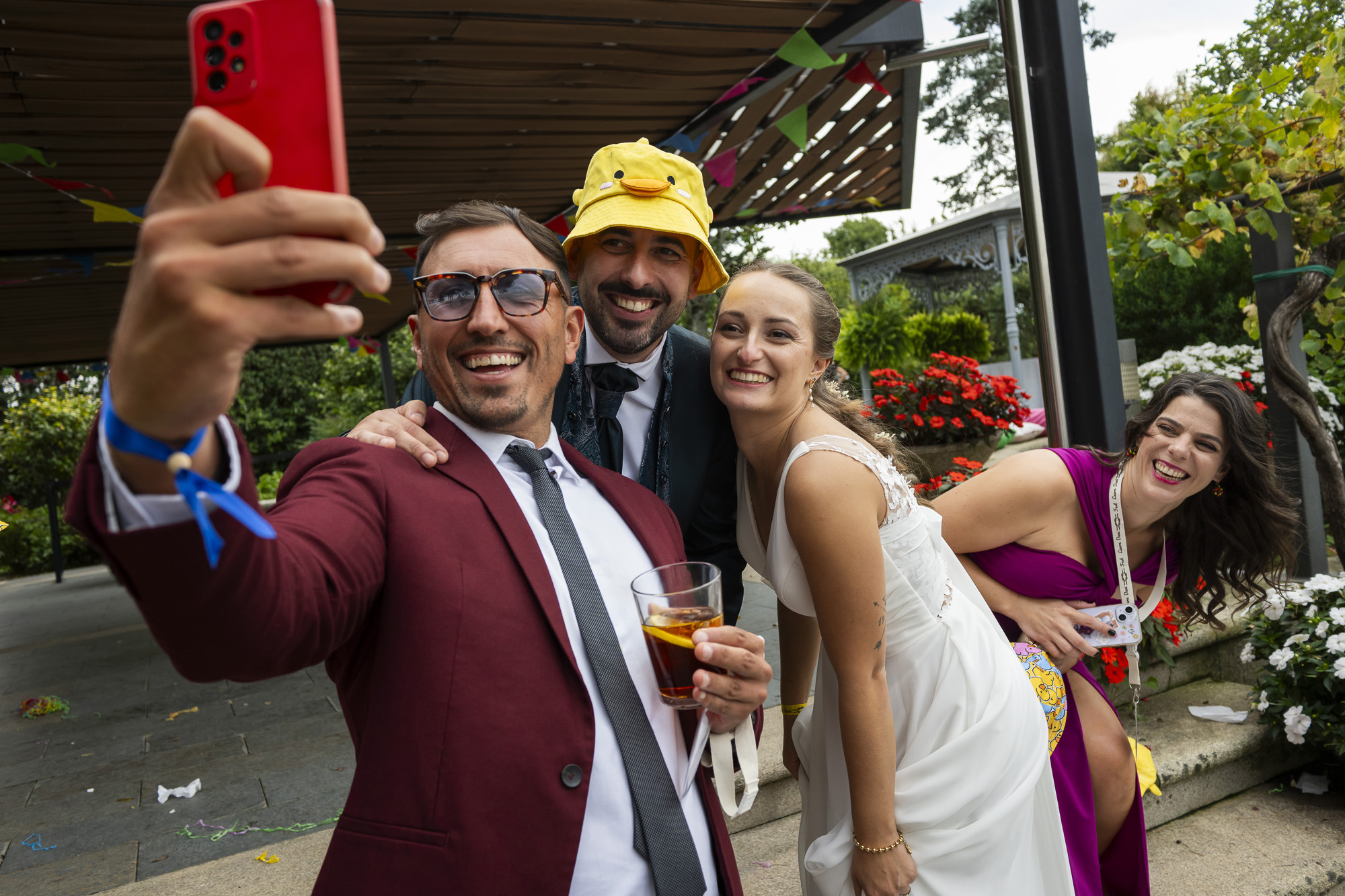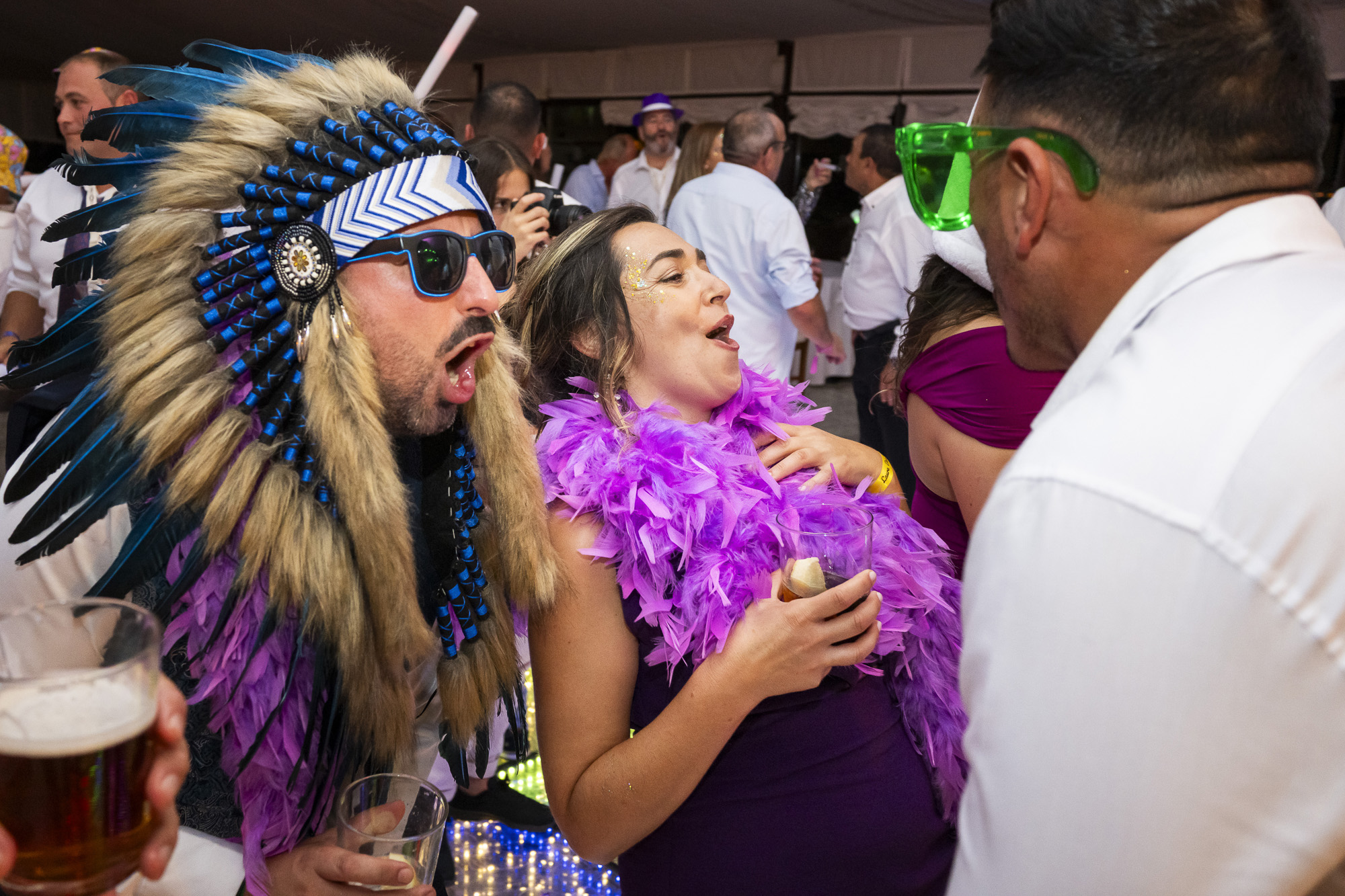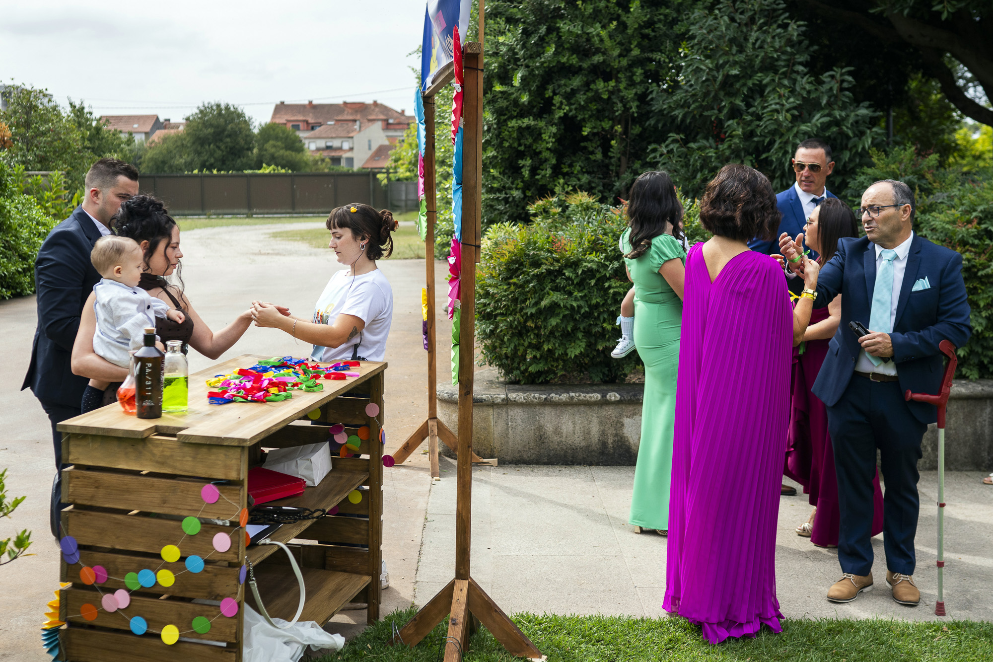 Desde la entrada, los invitados fueron recibidos por una original mesa de “pulseración”, donde cada uno recogía su pulsera personalizada como si estuviera accediendo a su festival favorito. Este detalle no solo marcaba el tono de la celebración, sino que también generaba ese ambiente desenfadado y emocionante tan propio de los grandes eventos musicales. La decoración estaba llena de colores vibrantes, textiles, luces cálidas y rincones chill out que invitaban a relajarse y disfrutar. Cada espacio estaba diseñado para ser vivido… y fotografiado.