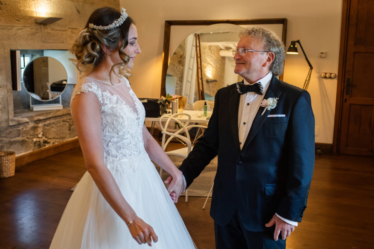 Ara y David eligieron el Pazo A Toxeiriña para celebrar su boda y no puedo estar más de acuerdo con ellos en que es uno de los lugares más bonitos de Galicia. Fue un día precioso, lleno de risas, lágrimas de alegría y mucha emoción. Desde el momento en que llegué a los preparativos en el Pazo y cuando vi a Ara saliendo del cochazo que llevaban al llegar a la iglesia, supe que iba a ser un día especial.