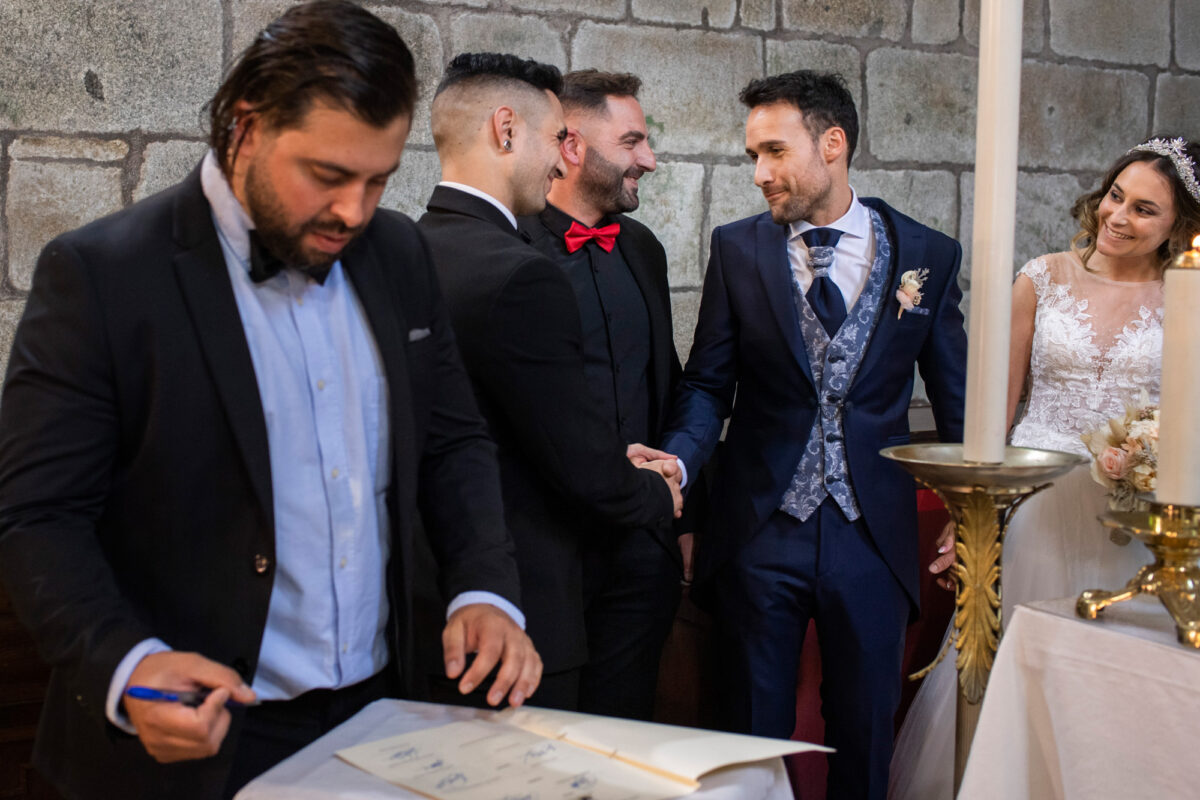 La ceremonia fue preciosa, llena de momentos emotivos que me encantó capturar con mi cámara. Después de la iglesia, nos fuimos al Pazo A Toxeiriña, donde tuvo lugar la fiesta. El lugar perfecto para una boda, con sus jardines inmensos, su piedra y salones. Lugar perfecto para unas fotografías rápidas de la pareja e ir rápido para el aperitivo a disfrutar de la fiesta.